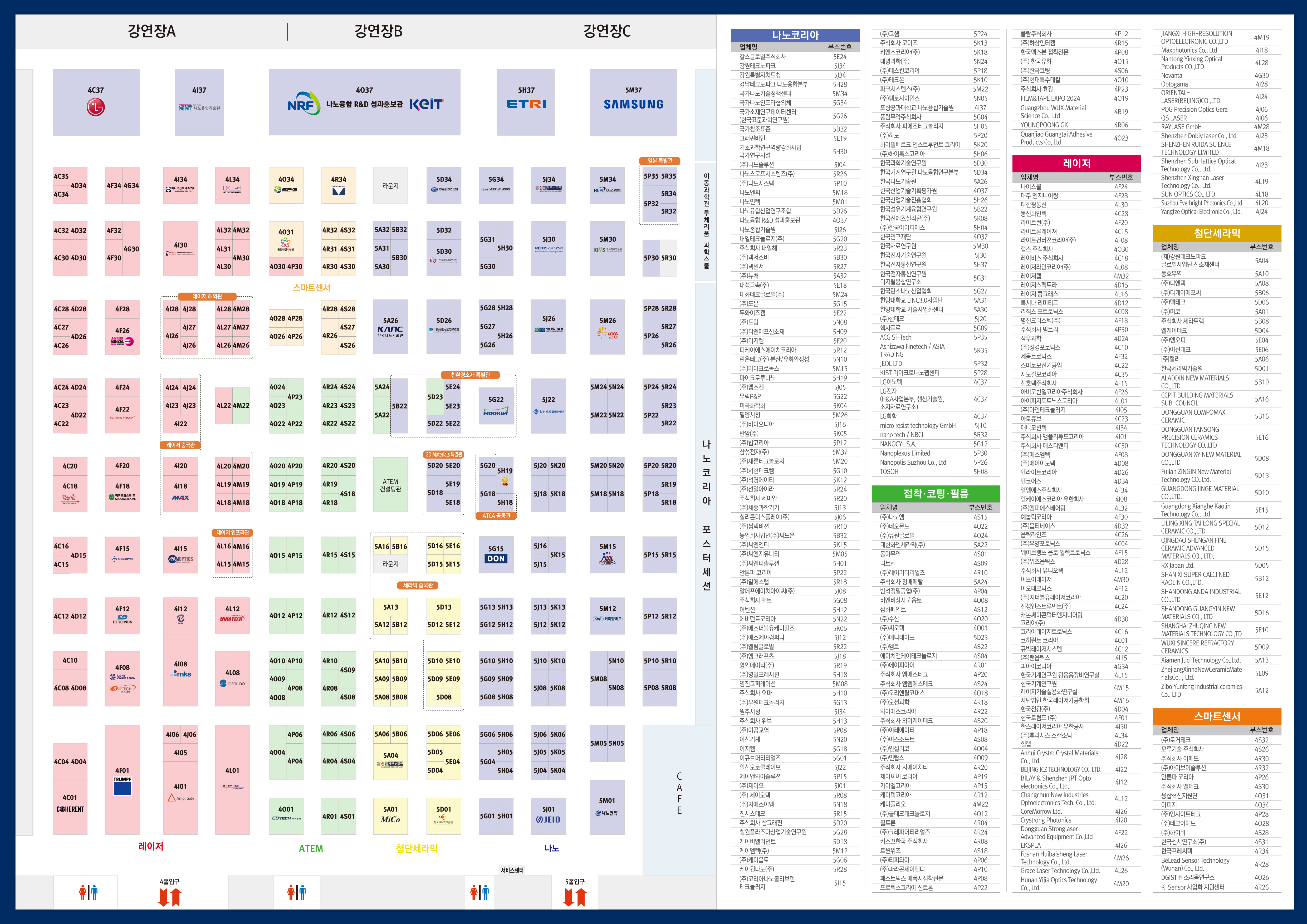 2024 나노코리아 / 아템페어 / 레이저코리아 / 첨단세라믹전시회 / 스마트센서코리아 최종 부스배치도 및 참가업체 목록을 공지드립니다.