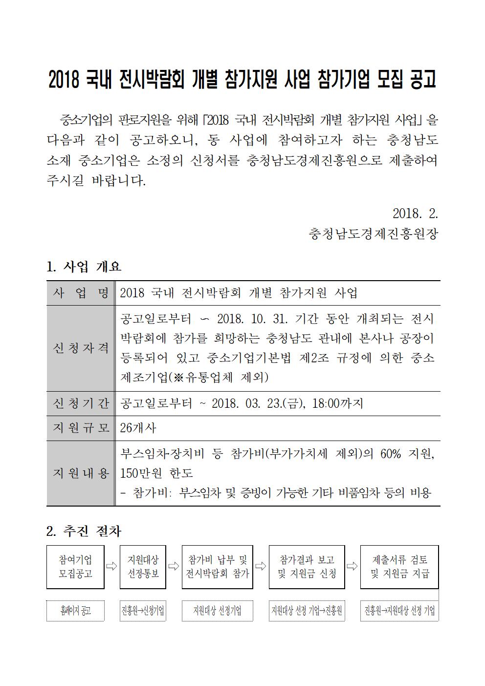 [신청마감][충청남도경제진흥원] 2018 국내 전시박람회 개별 참가지원 참가기업 모집 공고